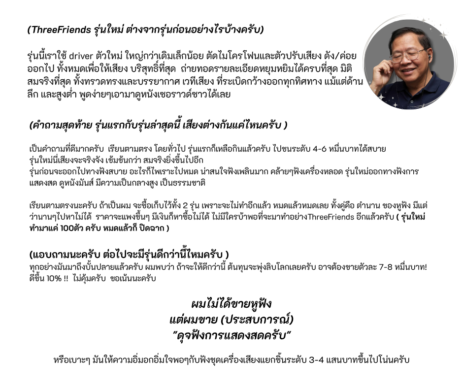 ขอขอบพระคุณลูกค้าทุกท่านเป็นอย่างสูงที่กรุณารีวิวหูฟัง Threefriends